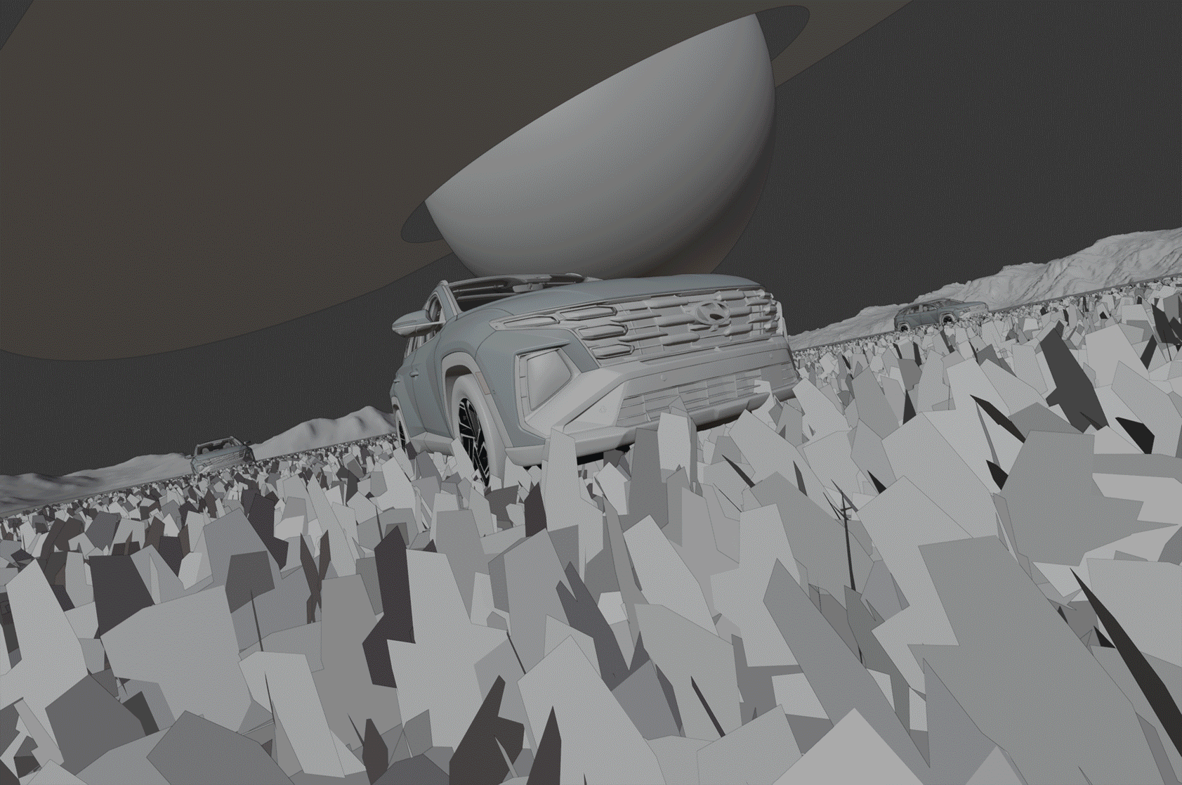"Because progress was never meant to disconnect us from where we come from You are going somewhere extraordinary with the Hyundai Tucson" In this project, we developed key visuals through a workflow that merges 3D/CGI with post-production, balancing craftsmanship, efficiency, and total control over every detail. Our goal was to build futuristic, surreal environments that still feel grounded; where advanced technology meets raw, organic landscapes. Vast natural terrains become a stage for innovation, creating a visual dialogue between progress and the origins that shape it. This independent project explores a simple but powerful question: how far can Hyundai go? Not just in distance, but in vision; pushing beyond roads, beyond expectations, and into new horizons where design, performance, and imagination converge.