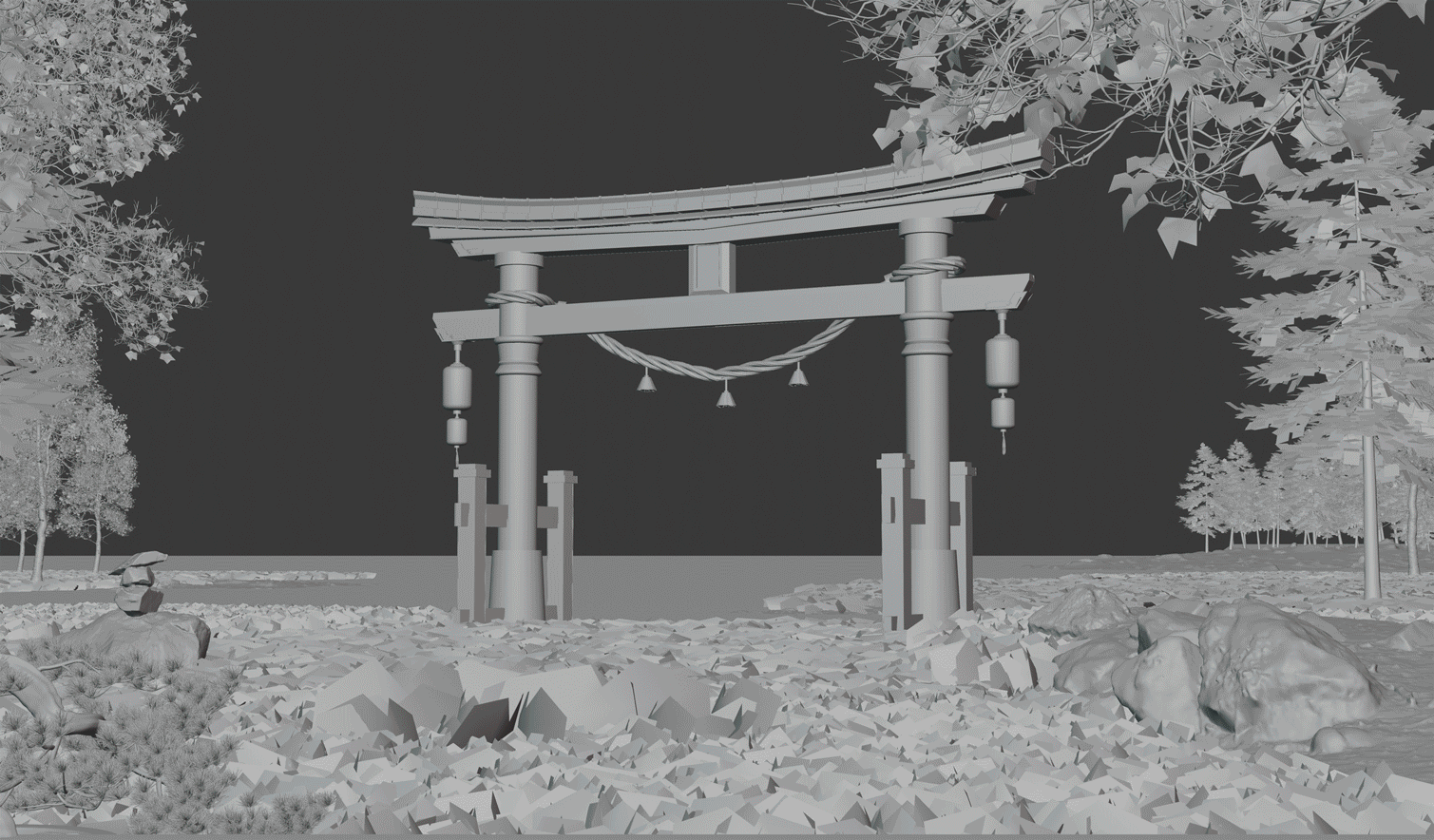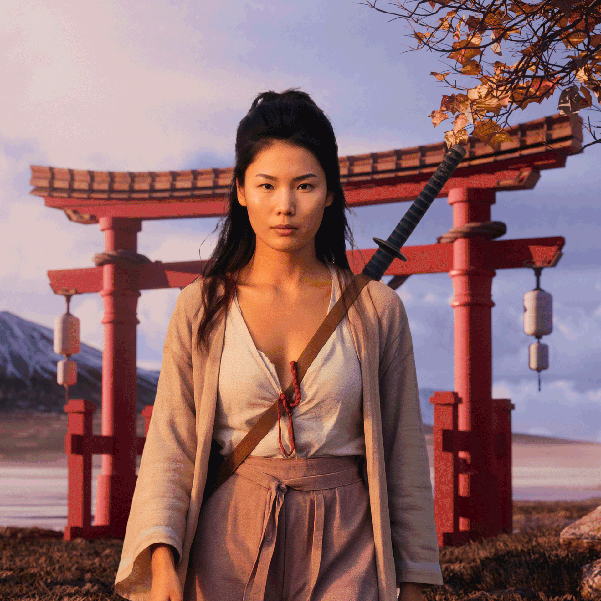 The environment was created in 3D, while the woman in the middle was made from scratch with the assistance of Ai. The model was heavily retouched in post-production to give a realistic, artistic and cinematic feel, as was the entire image.